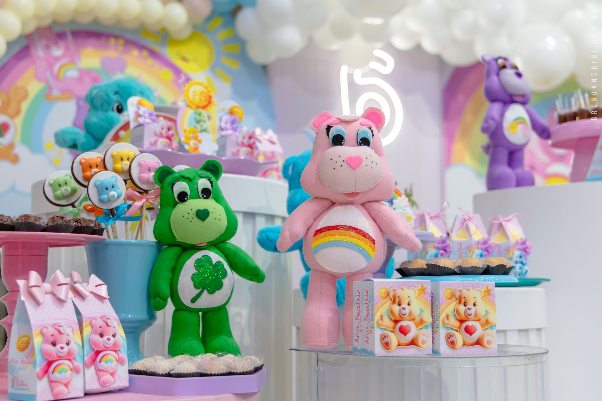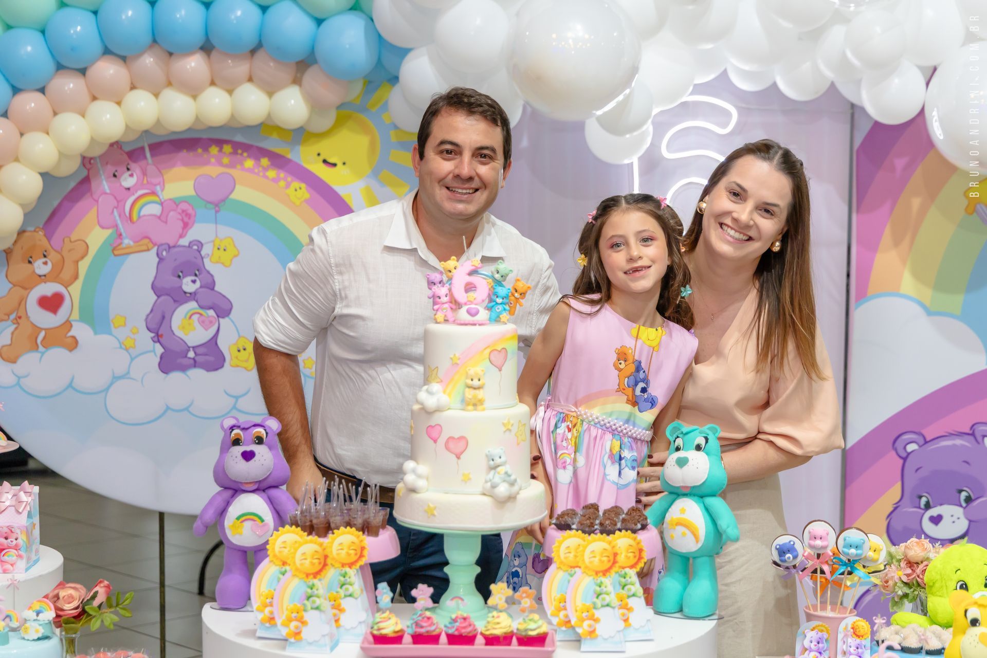 O tema Ursinhos Carinhosos trouxe cores suaves, delicadeza e aquele encanto que só a infância tem. Cada detalhe ajudava a contar a história da Ana Beatriz nessa fase tão gostosa de viver e lembrar.