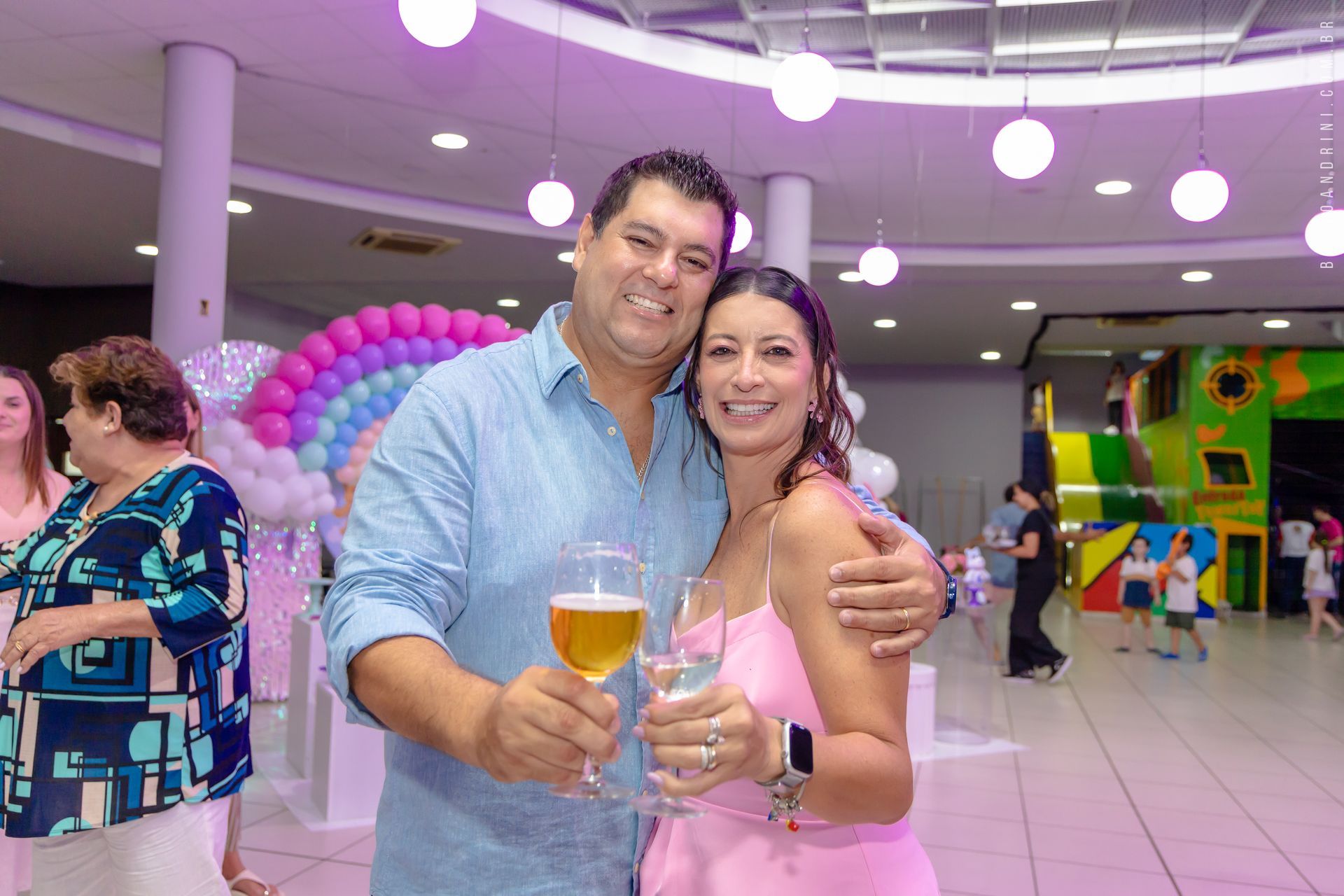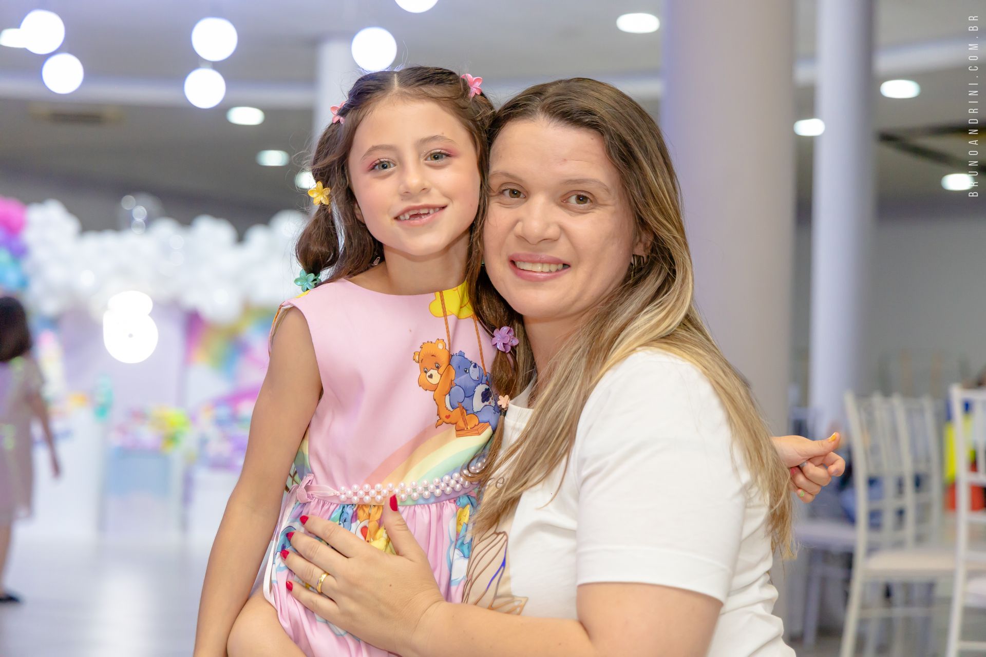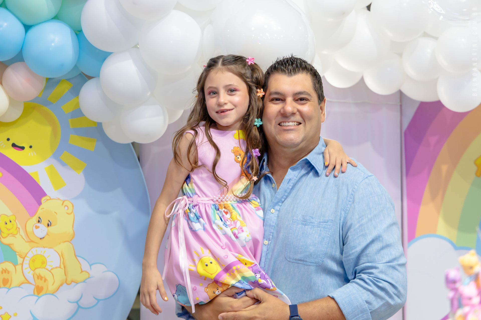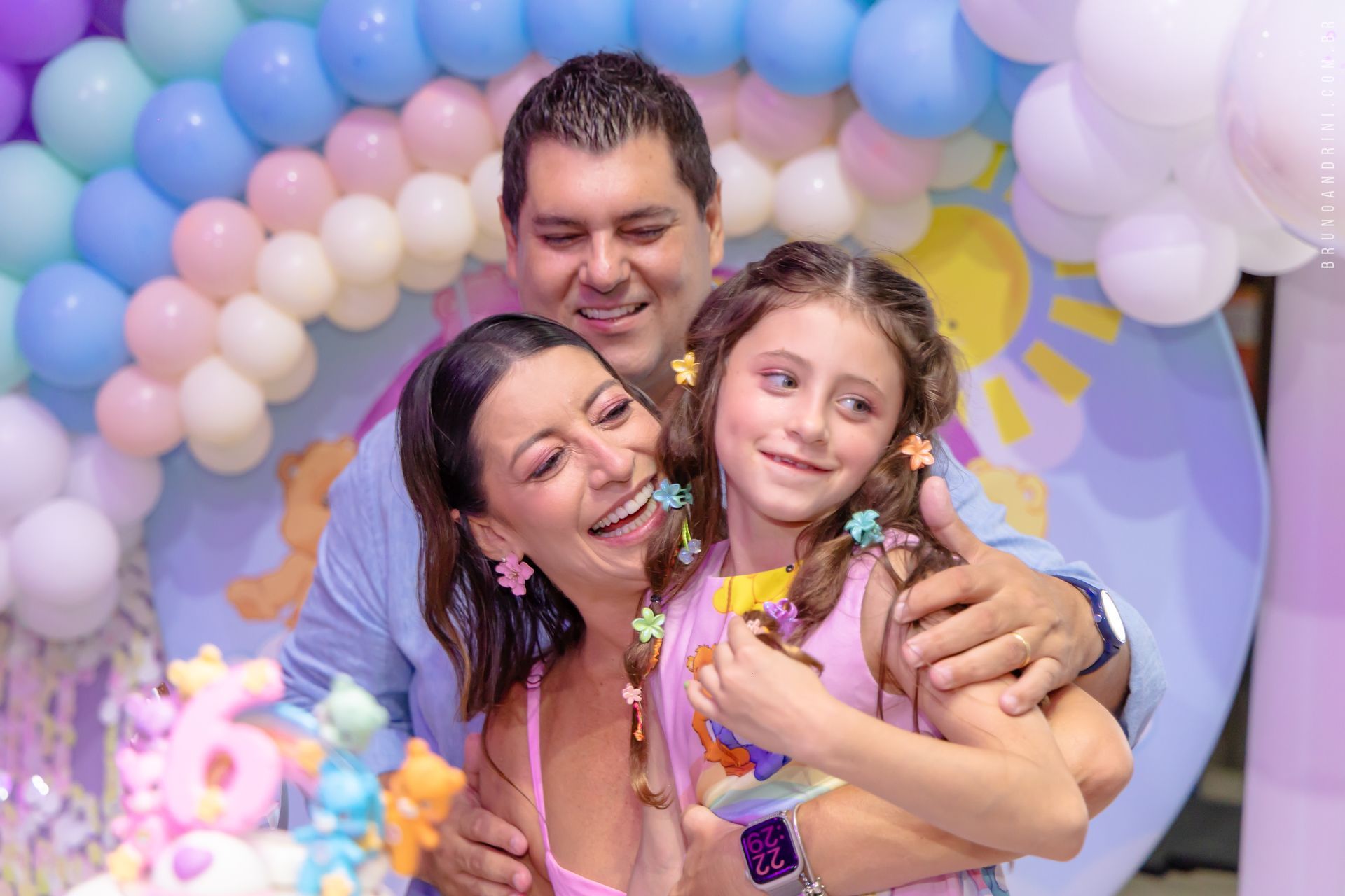 Mais do que decoração, o que marcou esse aniversário foi a troca entre pais e filha. Abraços espontâneos, risadas sinceras e momentos de carinho que surgem quando a criança se sente à vontade.