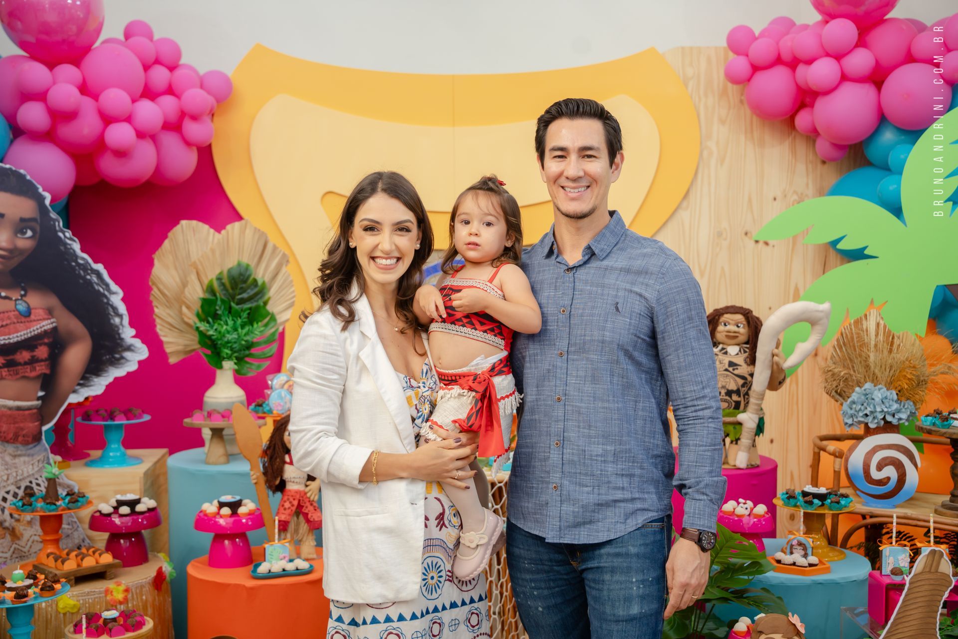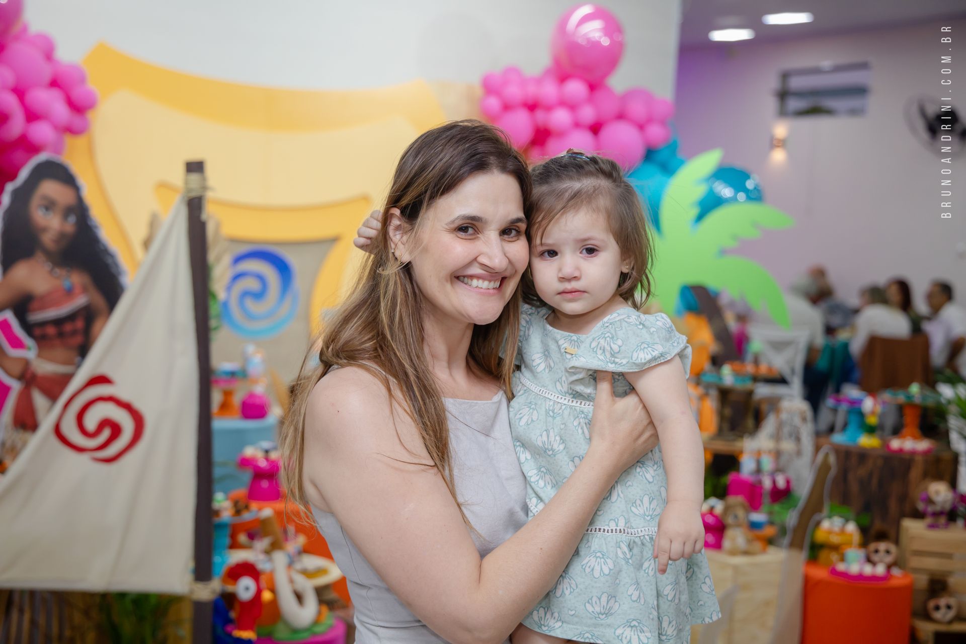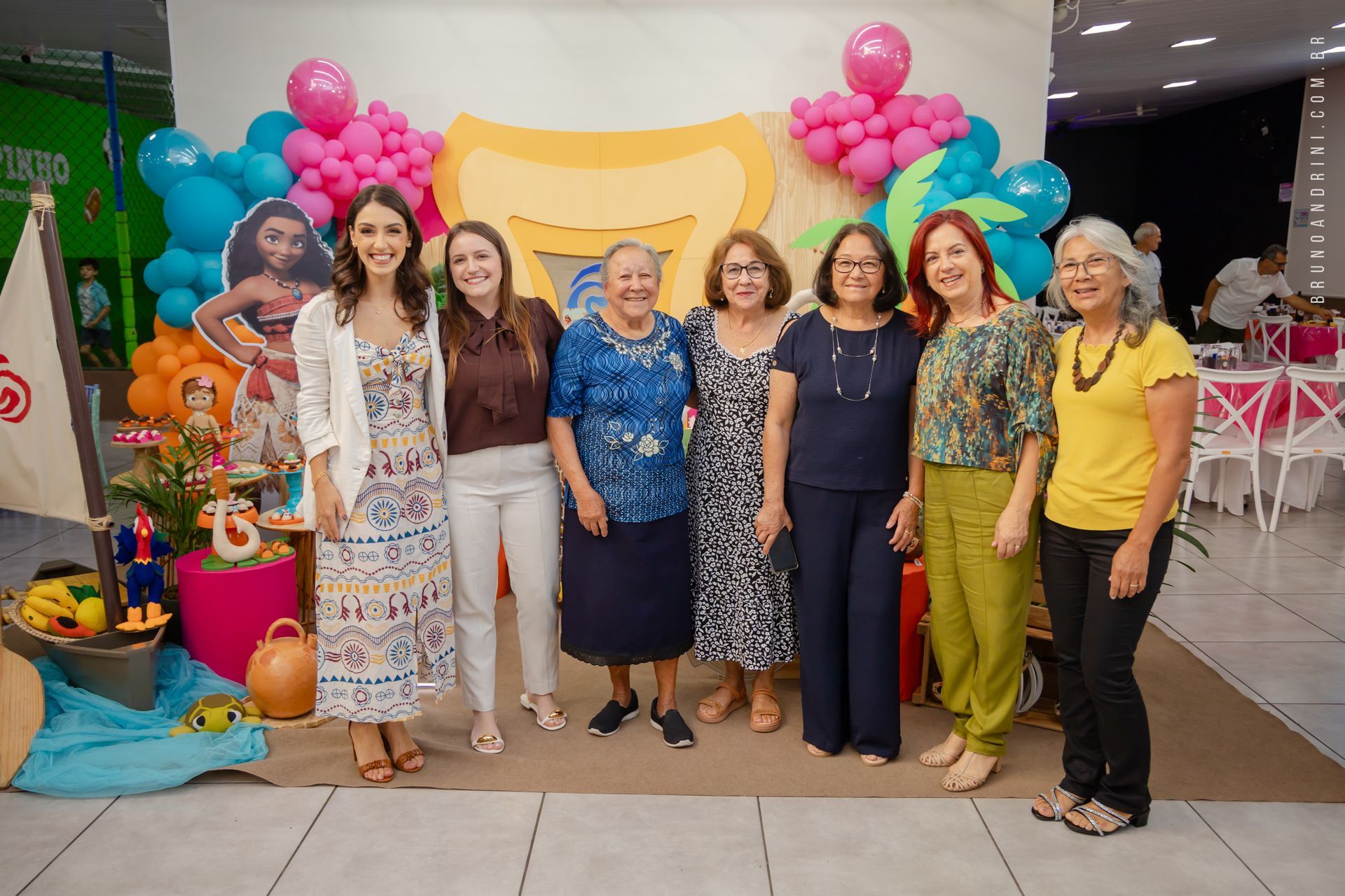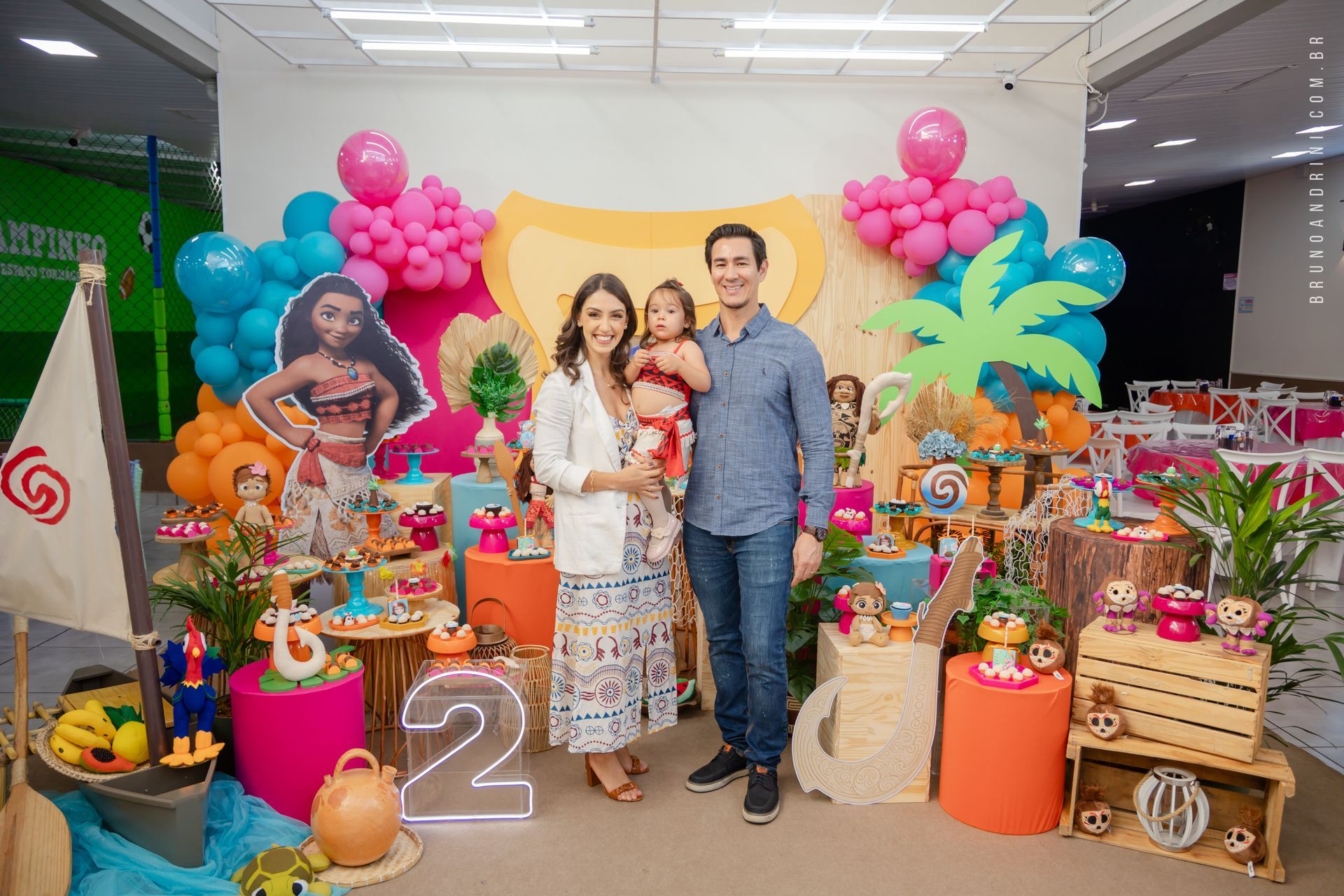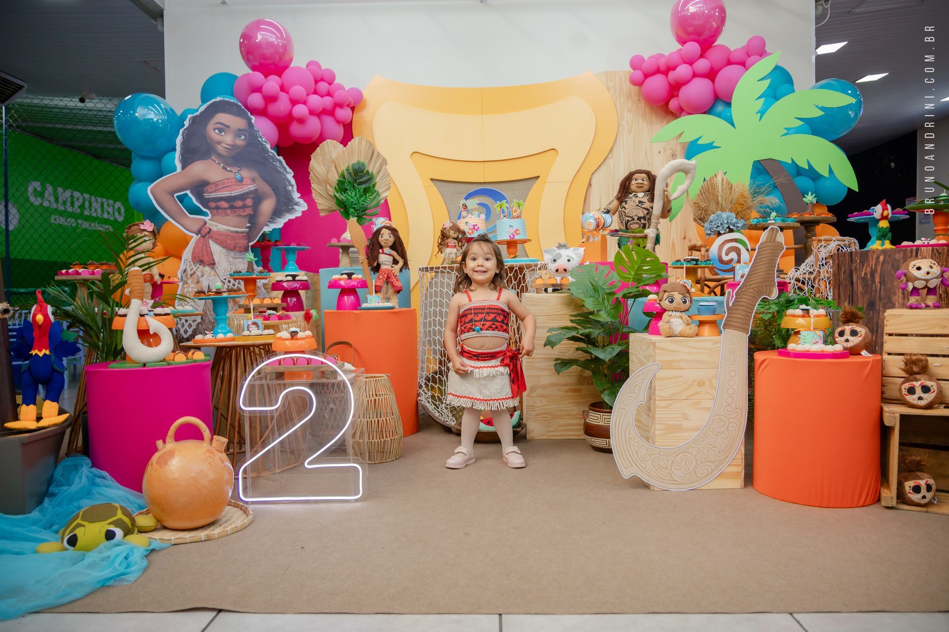 Com o tema da Moana, a festa trouxe cores vibrantes, elementos tropicais e uma atmosfera alegre, que combinava perfeitamente com a proposta do dia. A decoração ajudava a criar o cenário, mas quem realmente conduzia a festa era a própria Maria Luiza, com sua presença atenta e seus movimentos cheios de espontaneidade.