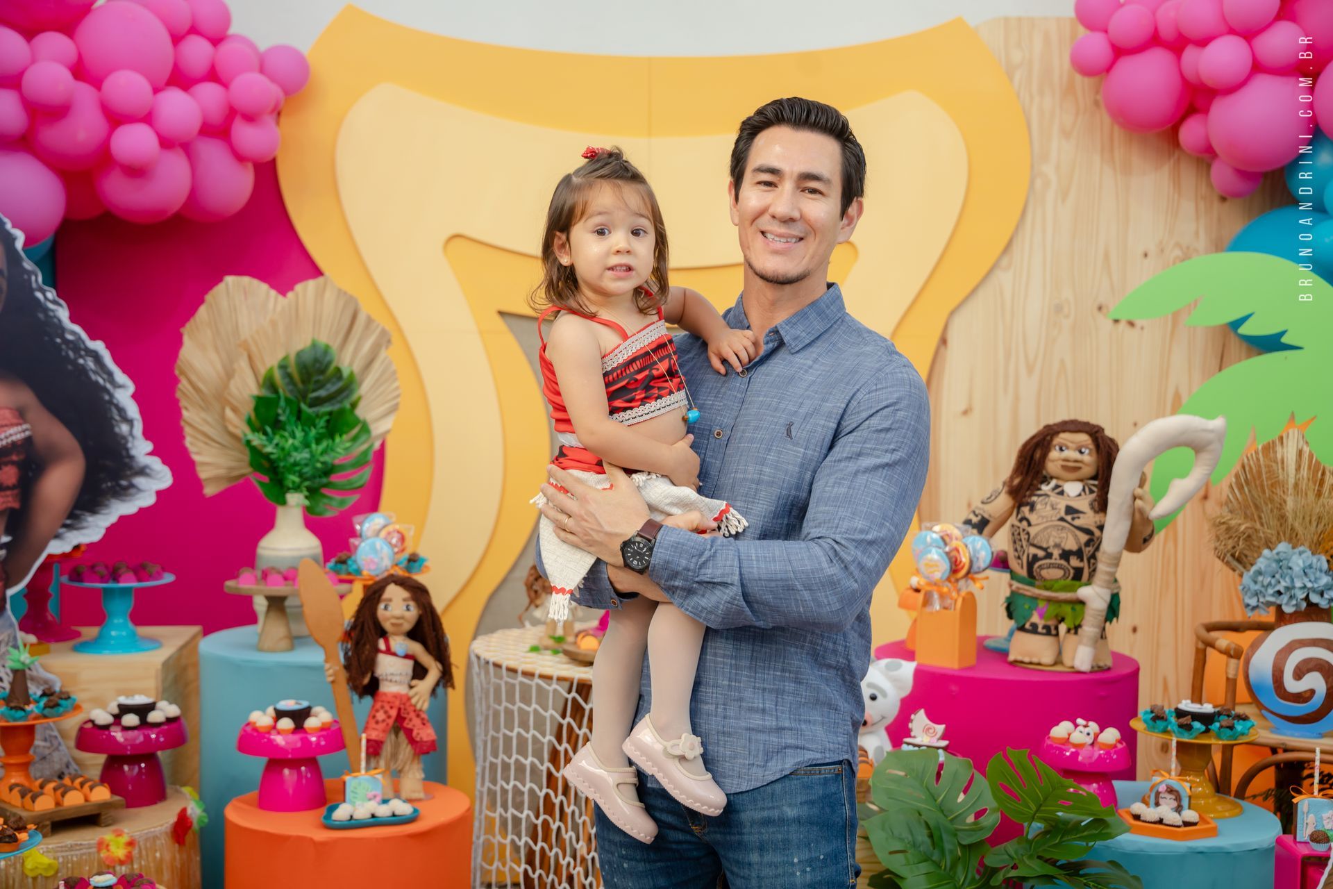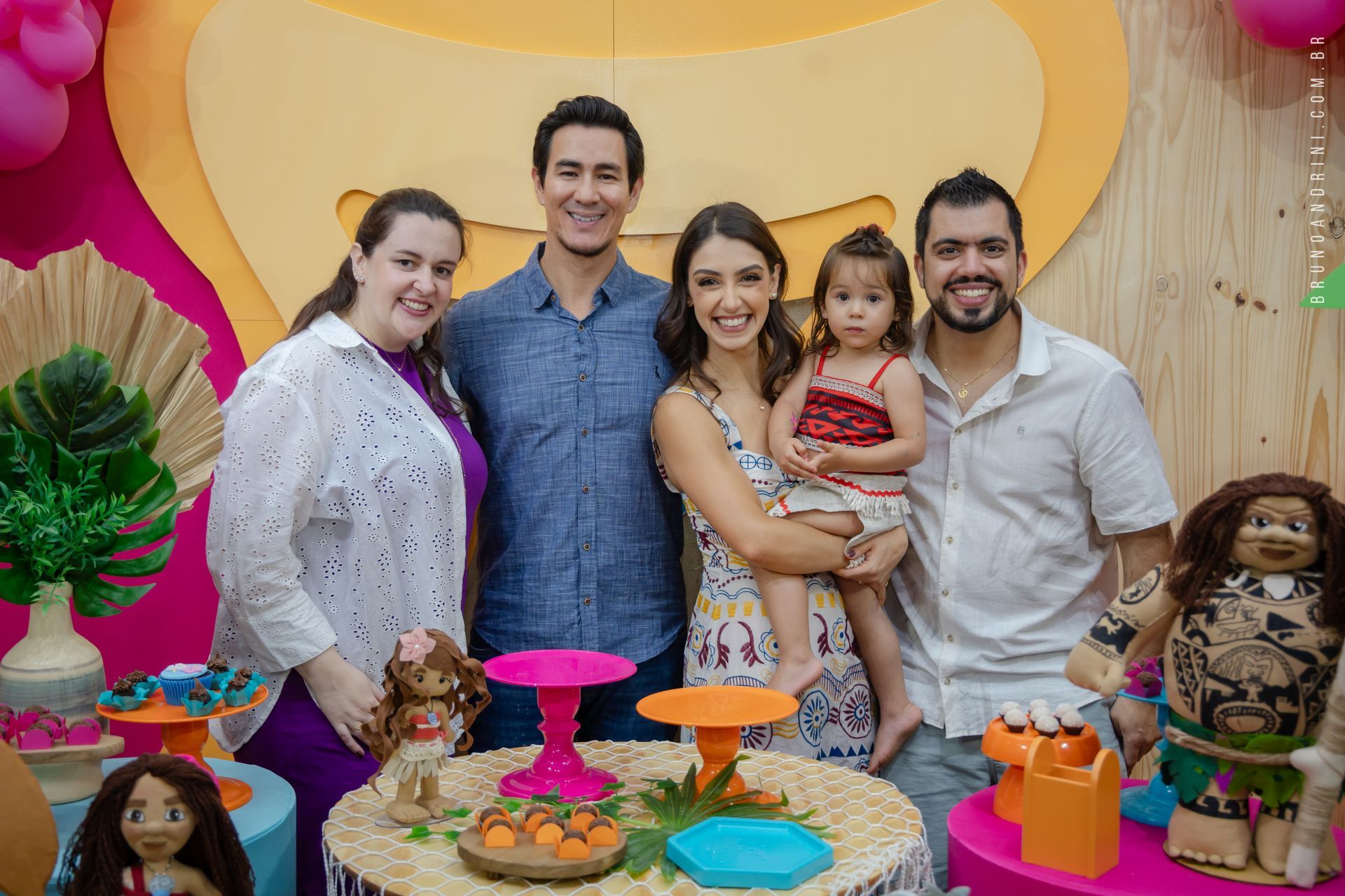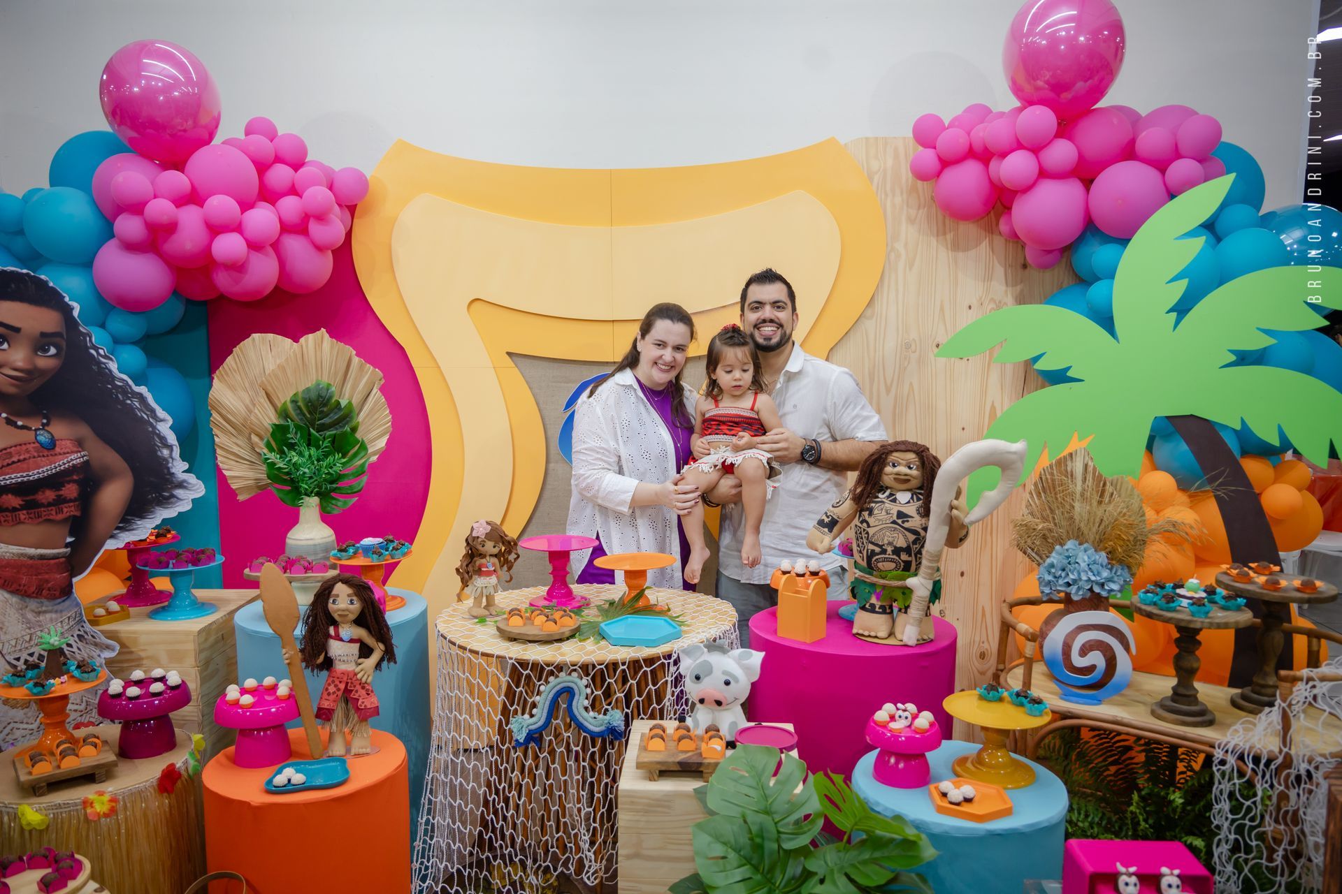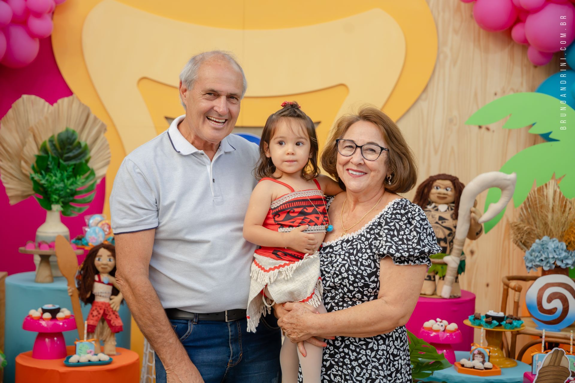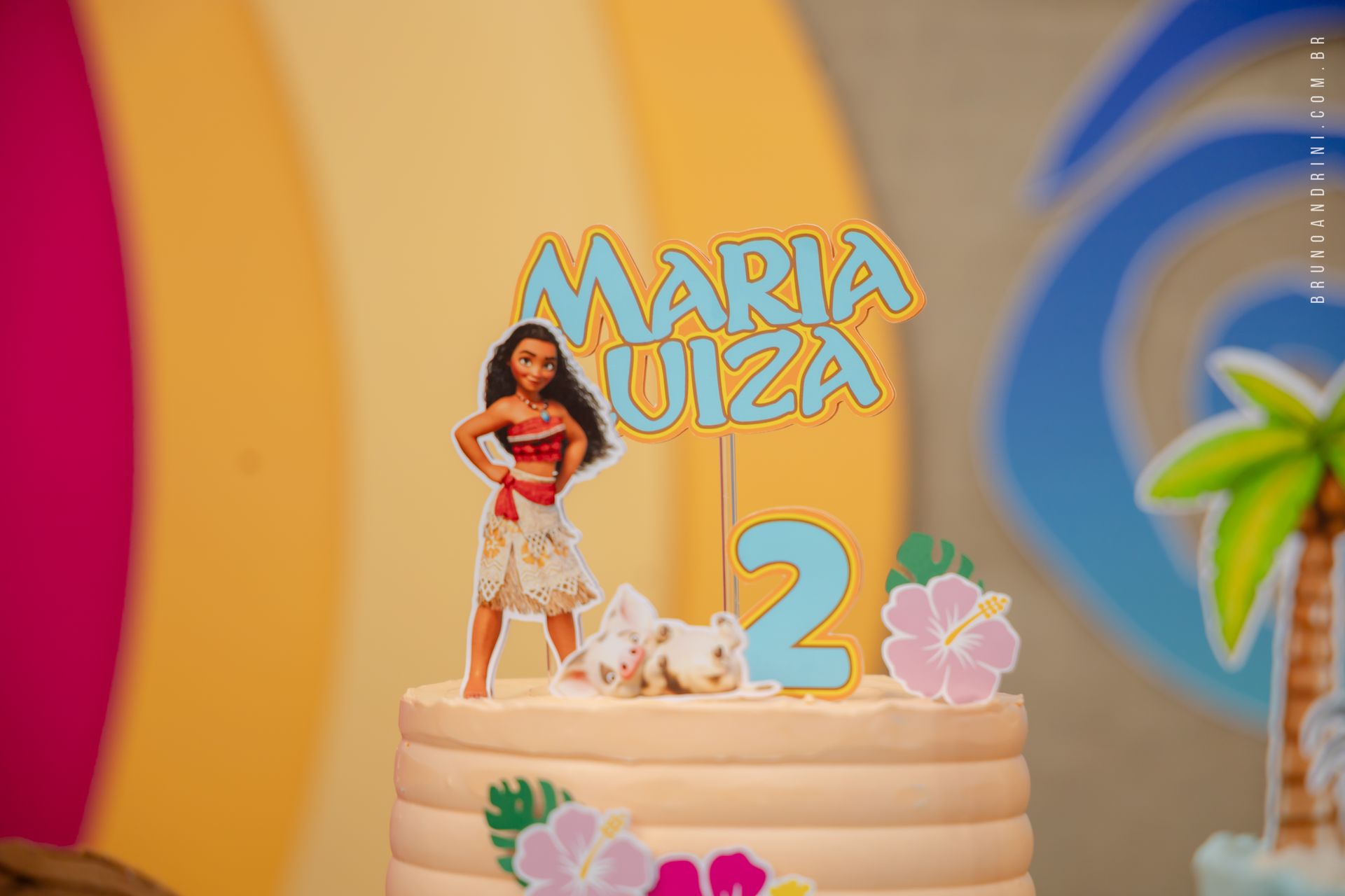 Com o tema da Moana, a festa trouxe cores vibrantes, elementos tropicais e uma atmosfera alegre, que combinava perfeitamente com a proposta do dia. A decoração ajudava a criar o cenário, mas quem realmente conduzia a festa era a própria Maria Luiza, com sua presença atenta e seus movimentos cheios de espontaneidade.