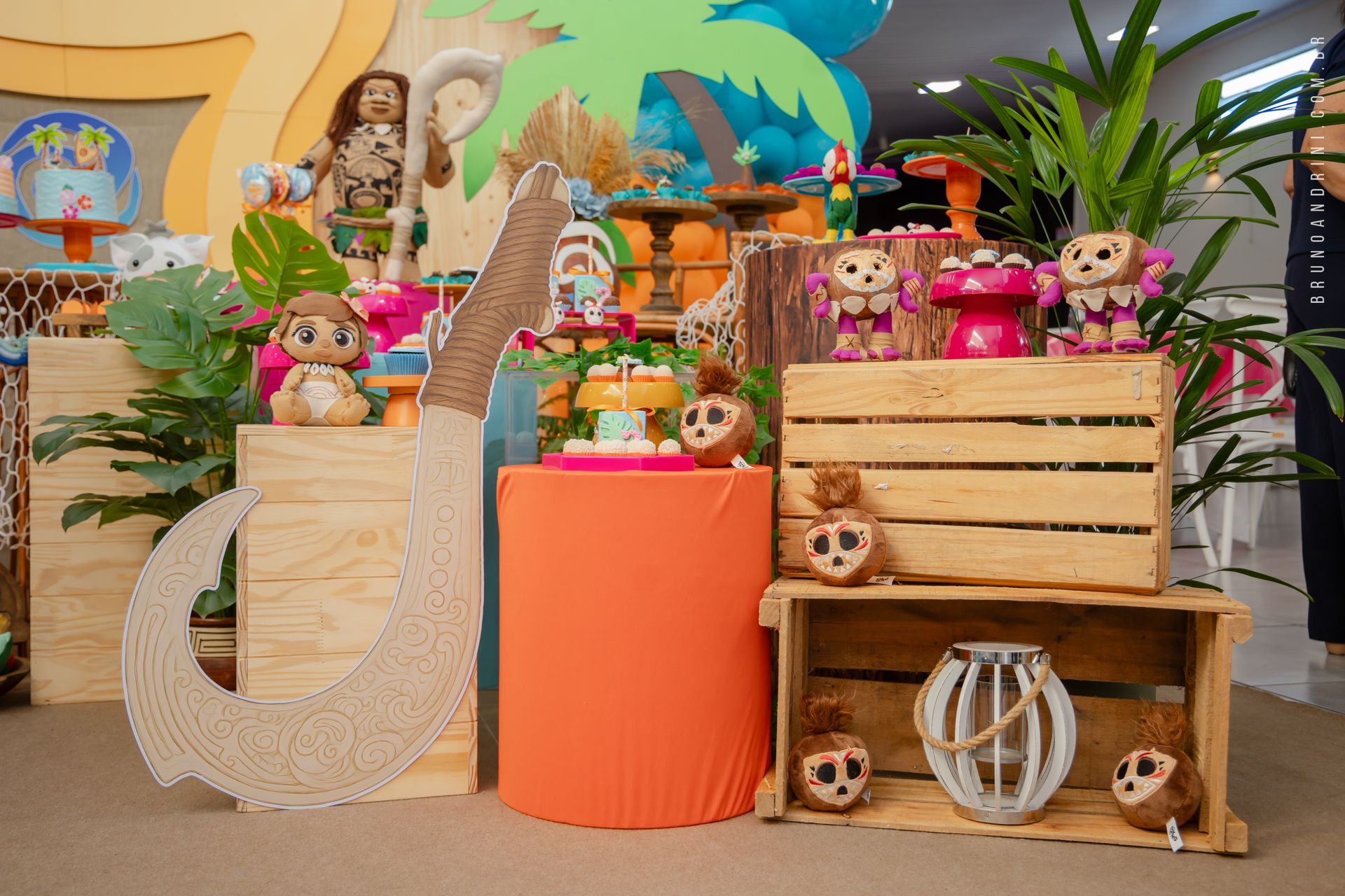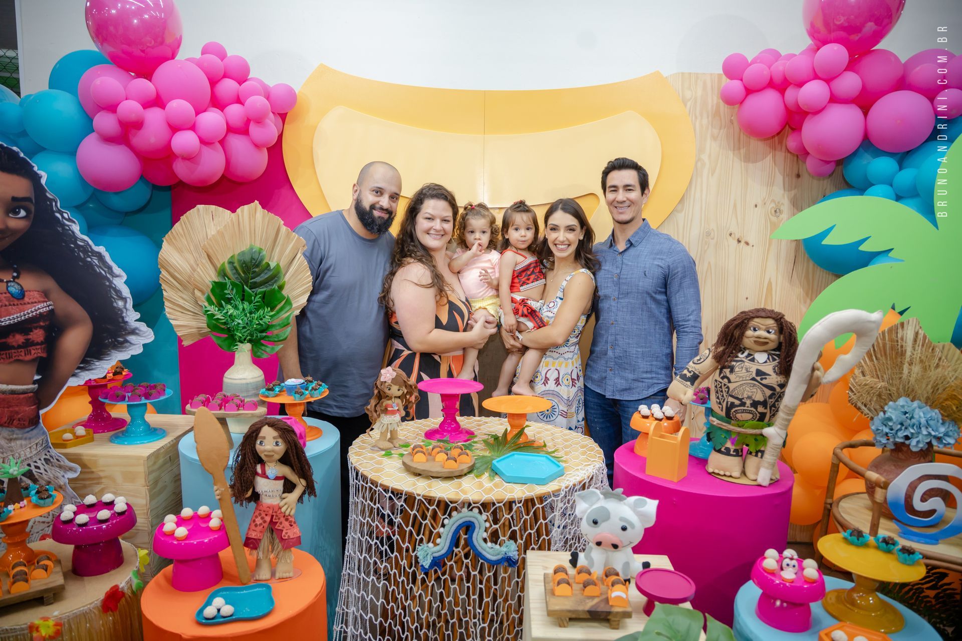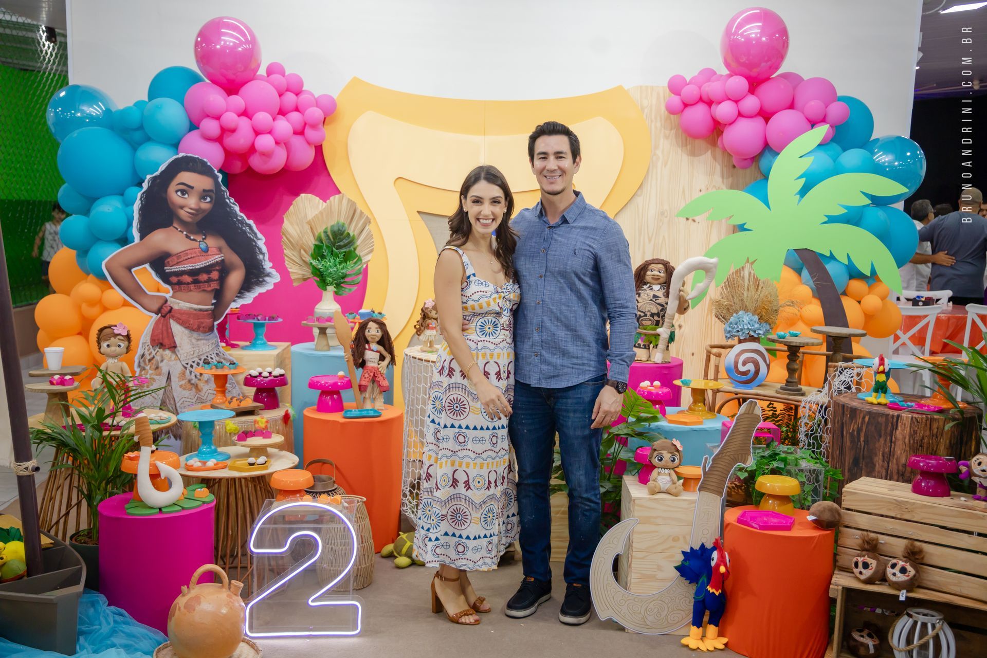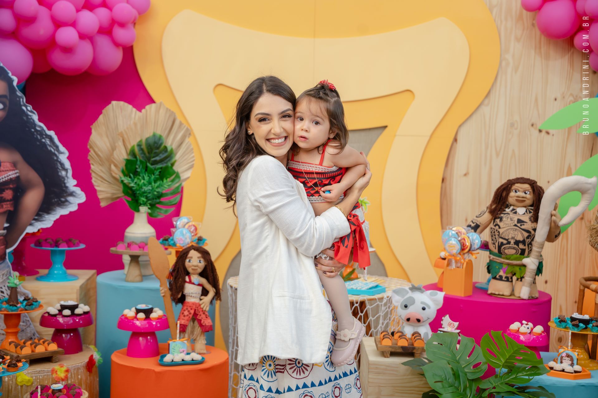 Com o tema da Moana, a festa trouxe cores vibrantes, elementos tropicais e uma atmosfera alegre, que combinava perfeitamente com a proposta do dia. A decoração ajudava a criar o cenário, mas quem realmente conduzia a festa era a própria Maria Luiza, com sua presença atenta e seus movimentos cheios de espontaneidade.