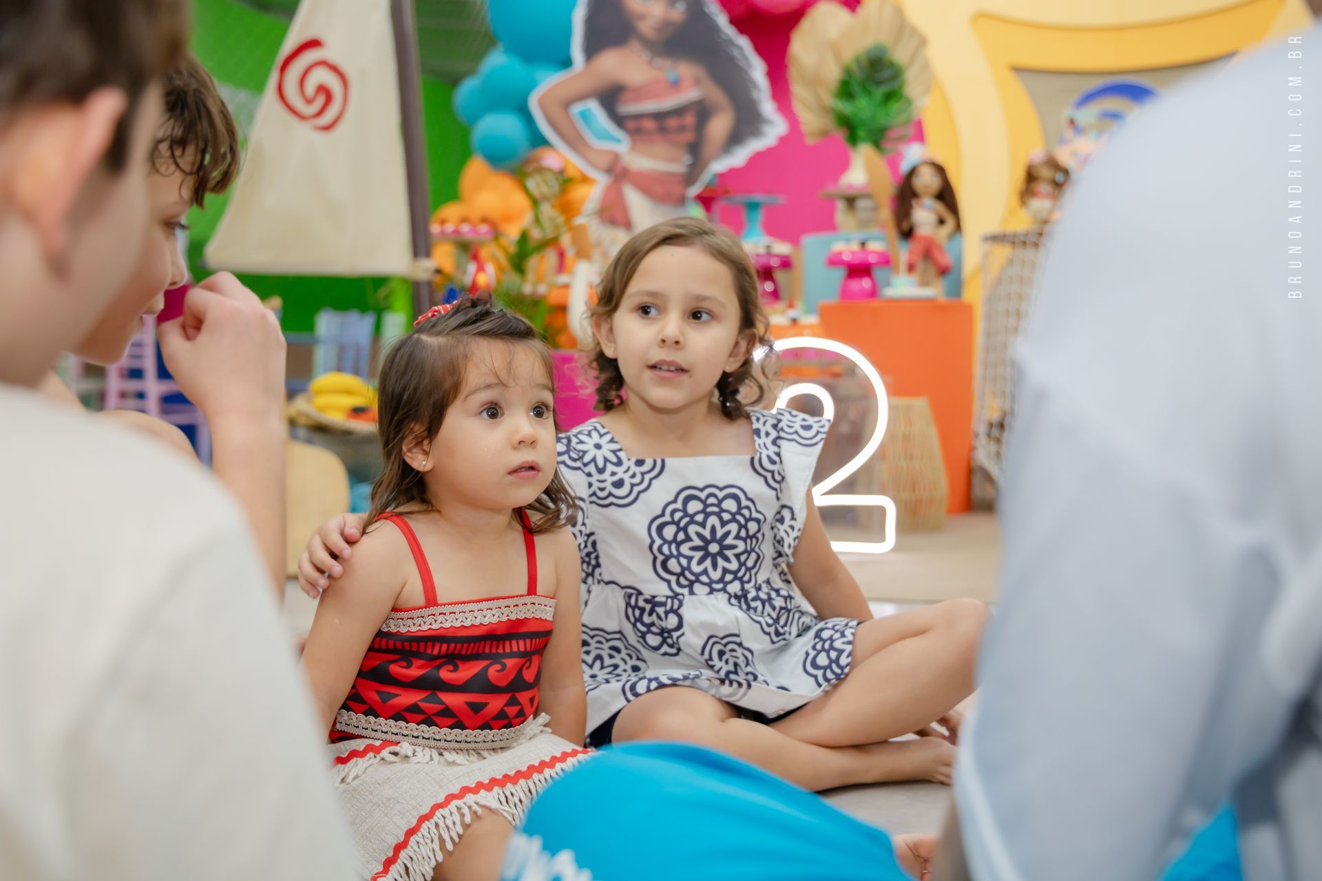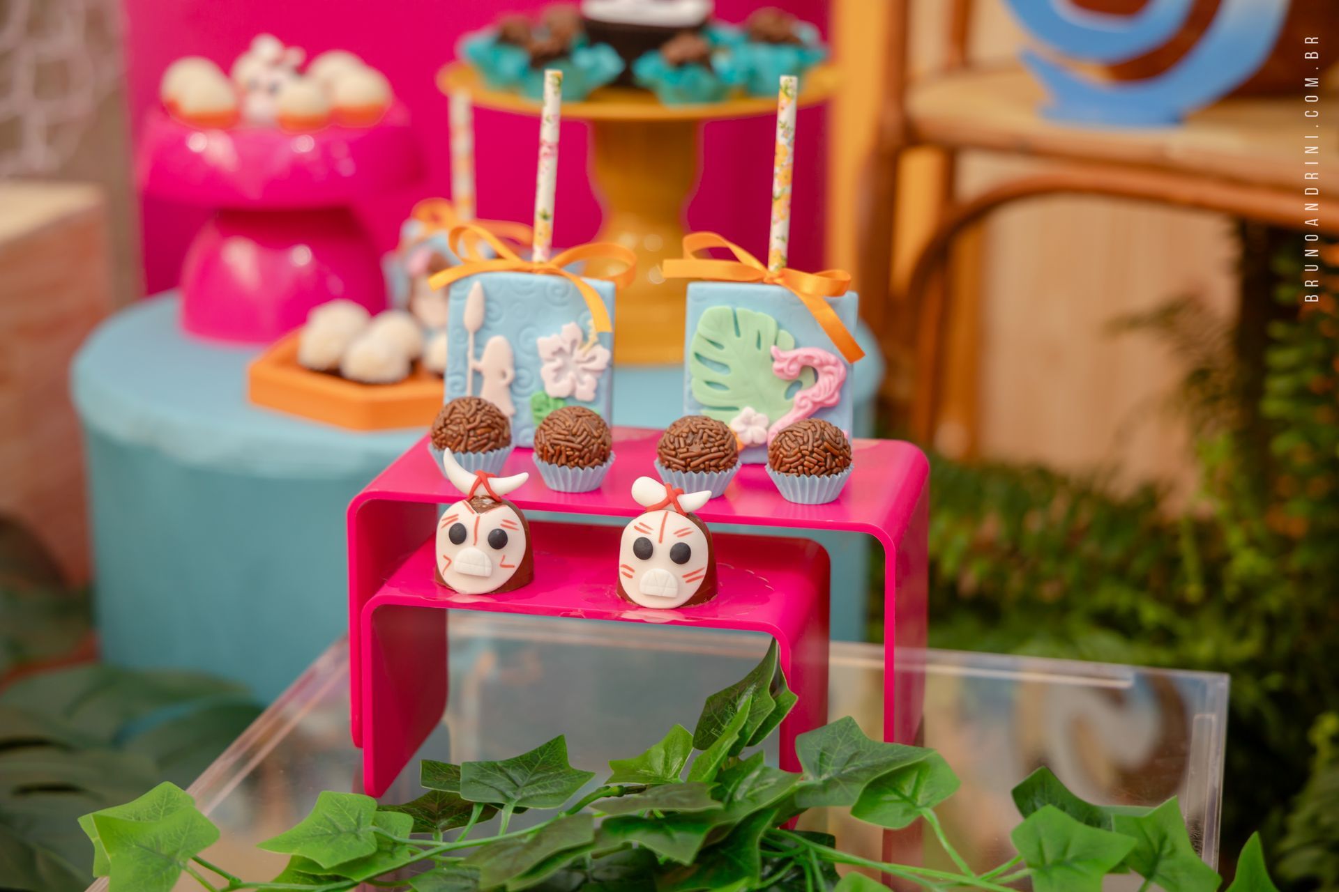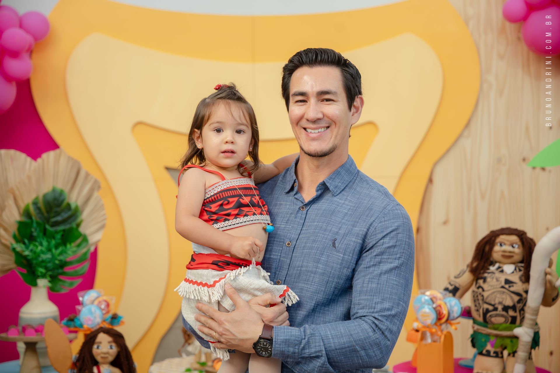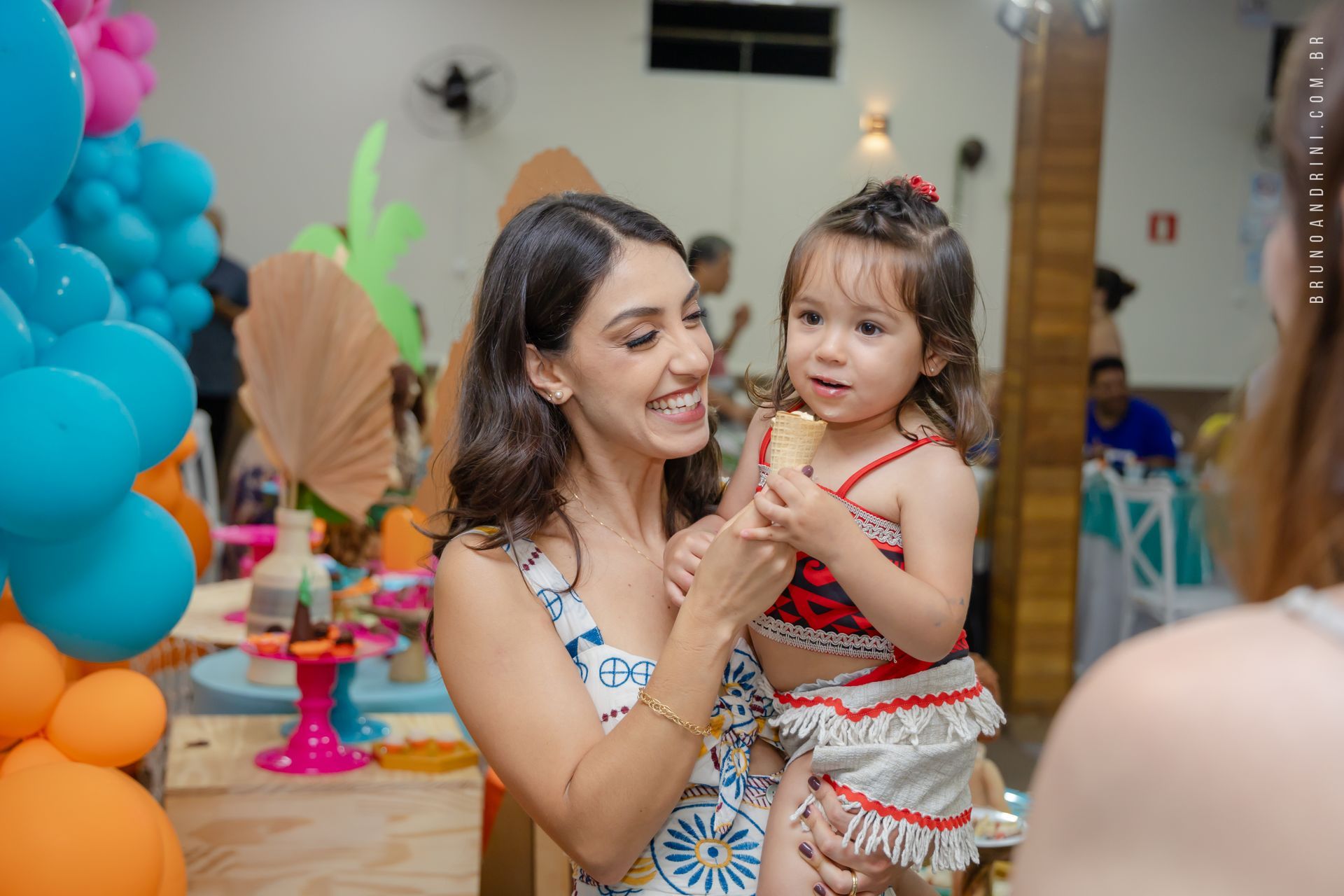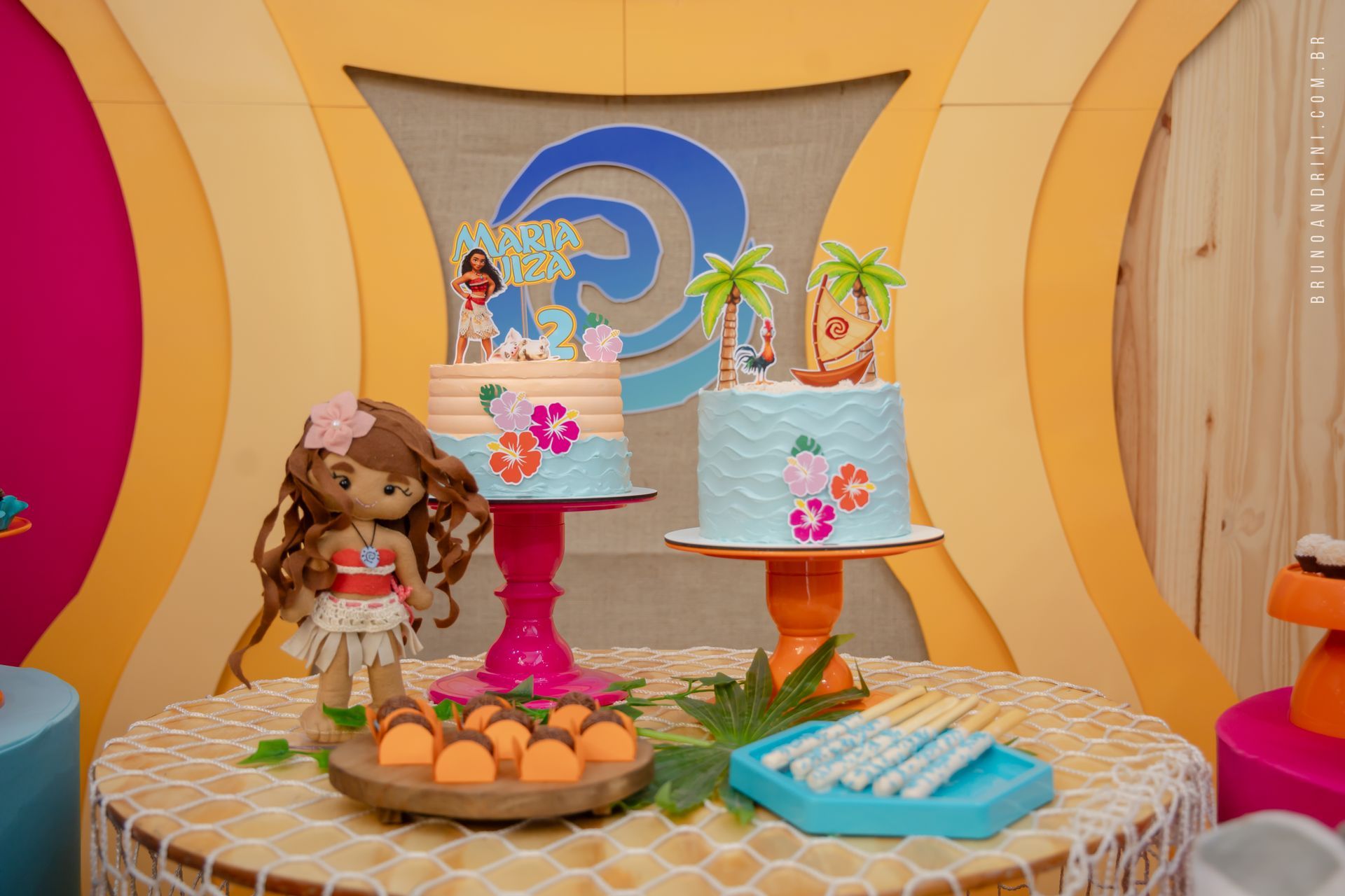 Com o tema da Moana, a festa trouxe cores vibrantes, elementos tropicais e uma atmosfera alegre, que combinava perfeitamente com a proposta do dia. A decoração ajudava a criar o cenário, mas quem realmente conduzia a festa era a própria Maria Luiza, com sua presença atenta e seus movimentos cheios de espontaneidade.