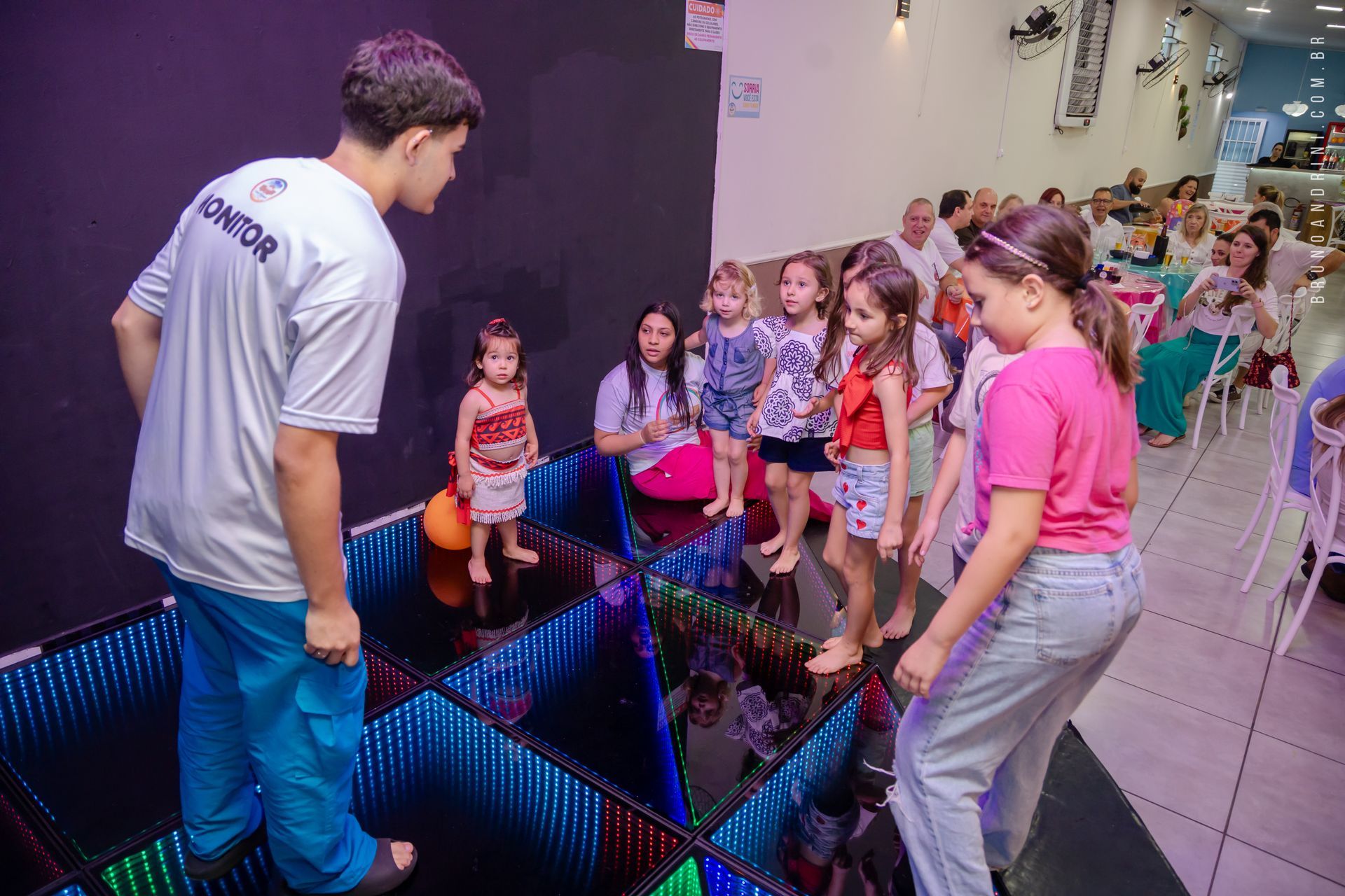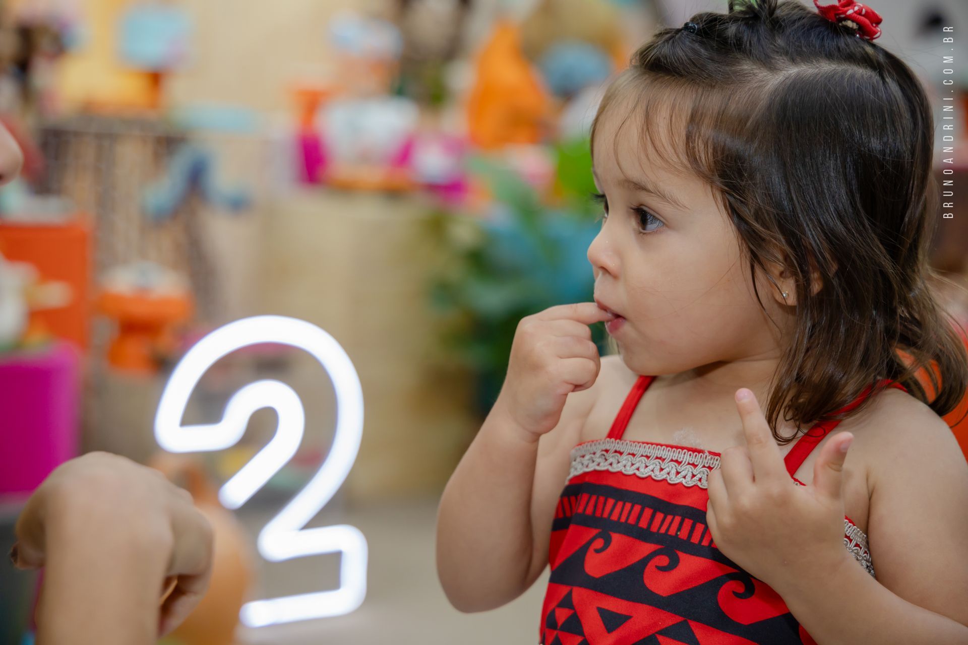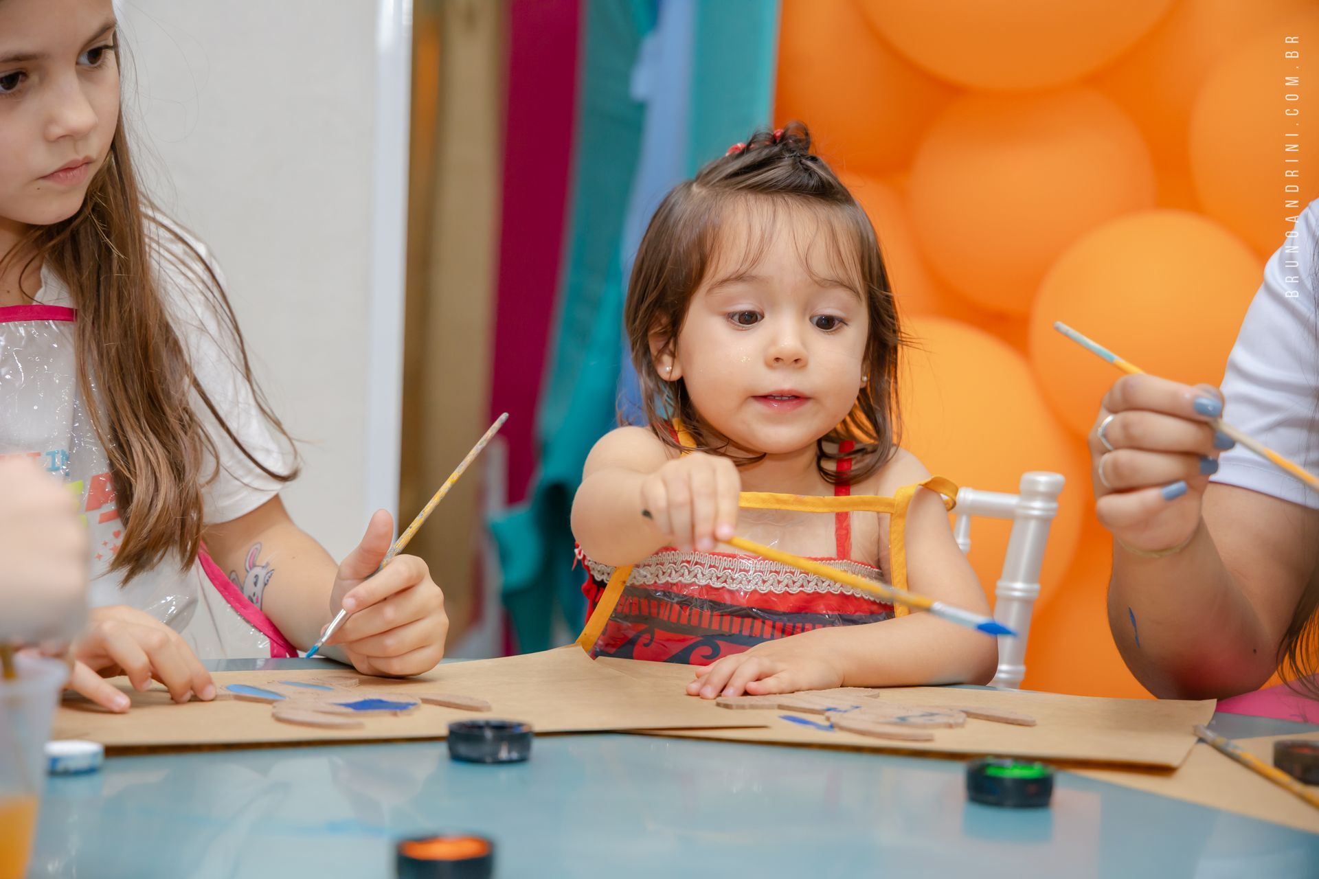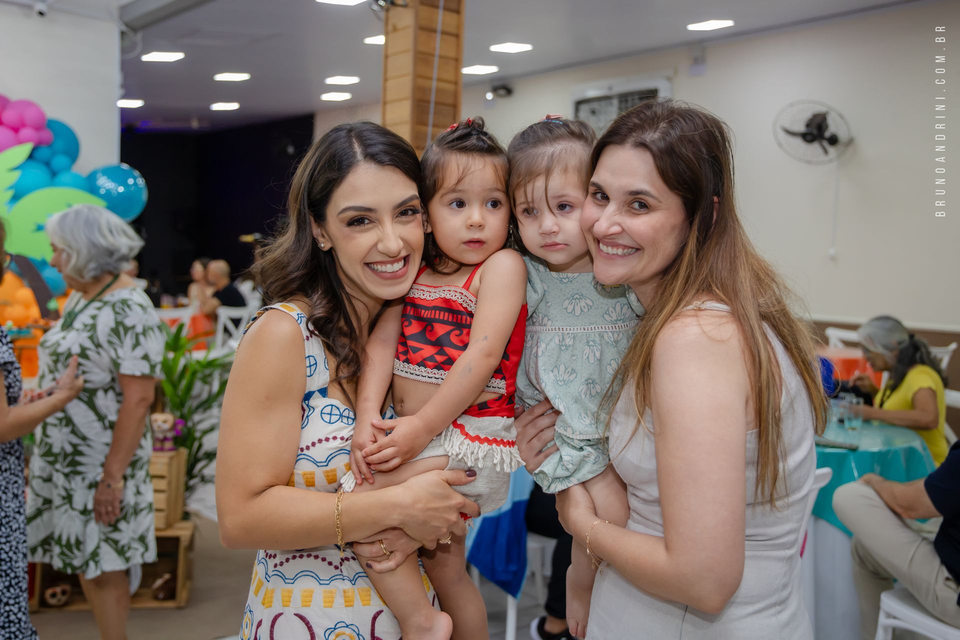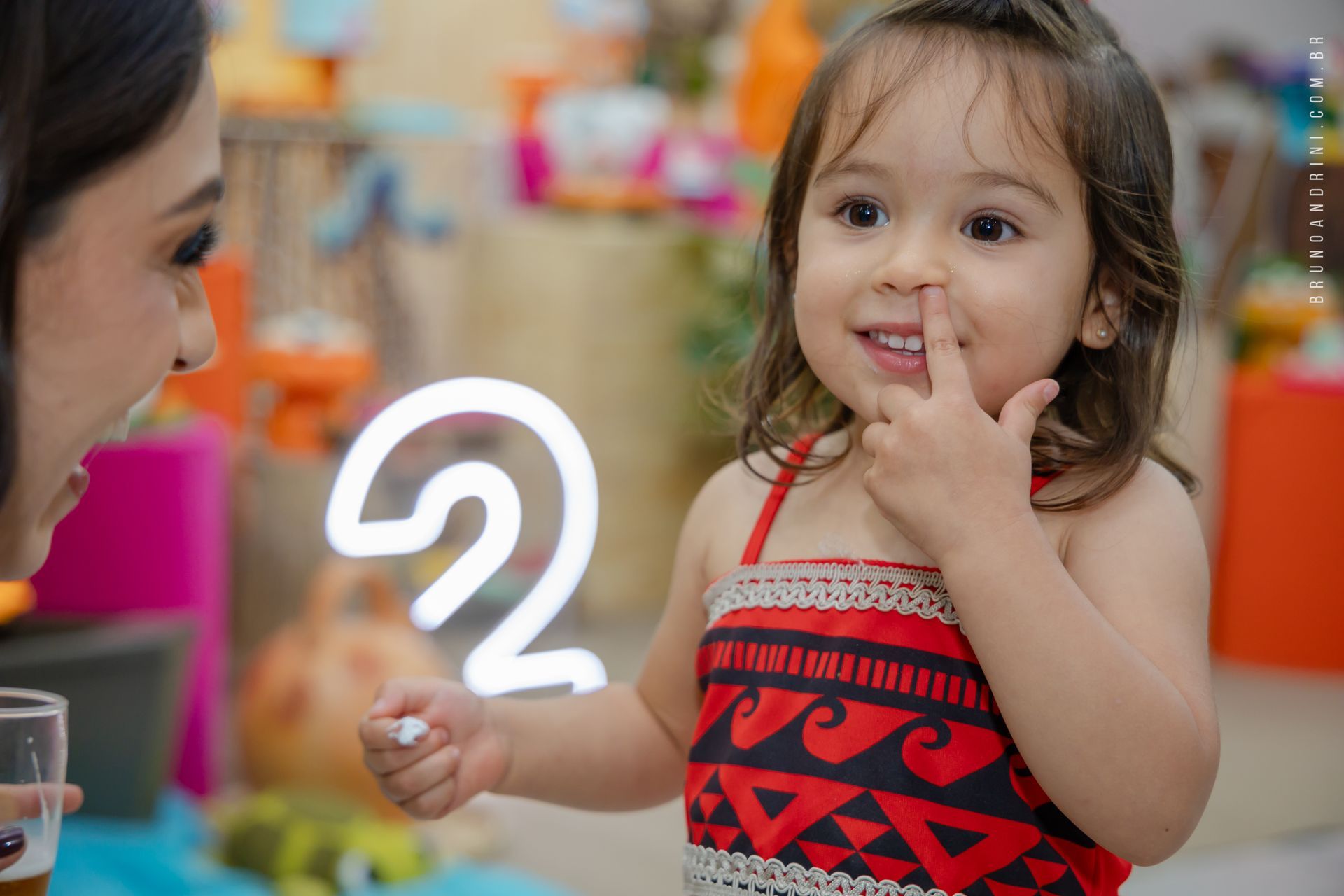 Com o tema da Moana, a festa trouxe cores vibrantes, elementos tropicais e uma atmosfera alegre, que combinava perfeitamente com a proposta do dia. A decoração ajudava a criar o cenário, mas quem realmente conduzia a festa era a própria Maria Luiza, com sua presença atenta e seus movimentos cheios de espontaneidade.