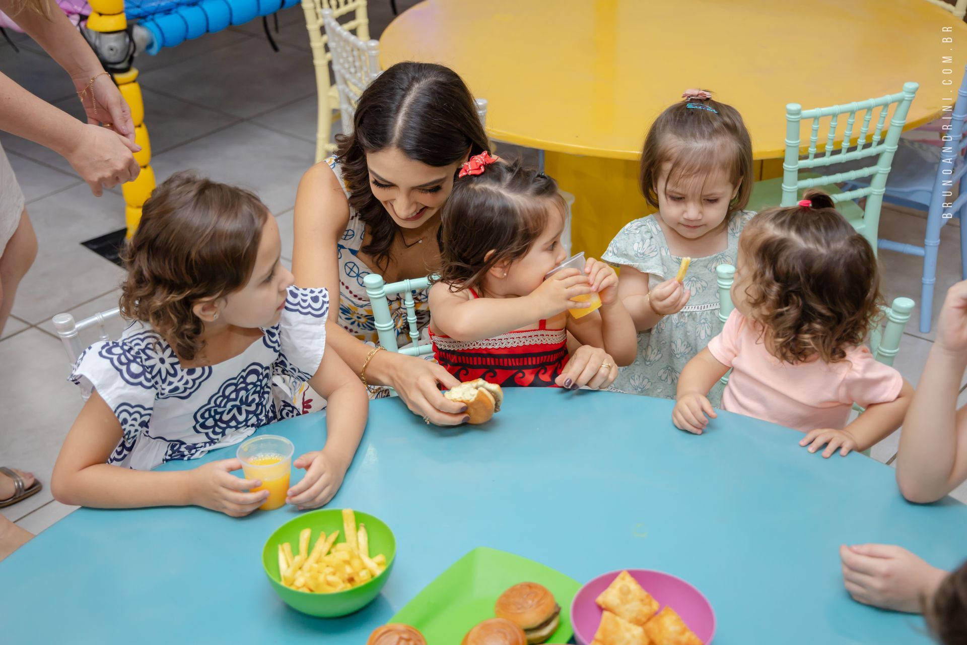 Entre as brincadeiras, os momentos com a família e as interações com outras crianças, os registros foram acontecendo de forma natural. Sorrisos, expressões curiosas, pequenos gestos e muita liberdade para viver a festa do jeito que ela é nessa fase: dinâmica, leve e cheia de descobertas.