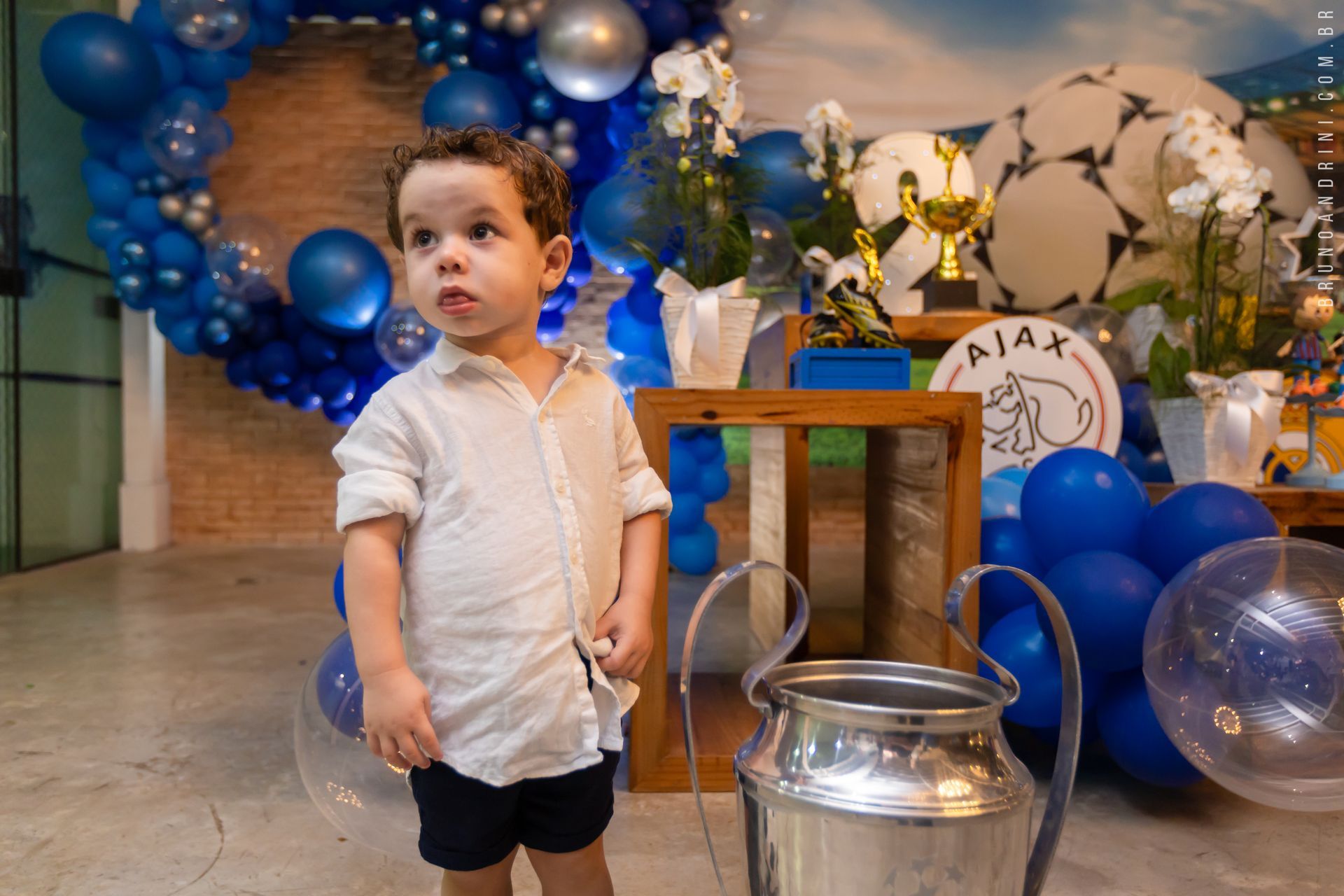 No dia 22 de março, tive a alegria de fotografar o 2° aniversário do Guilherme, uma data especial celebrada com o tema Champions League no Bala Balão Buffet Infantil. O Gui apareceu radiante, vestindo a camisa do seu time do coração, o Palmeiras, e trouxe ainda mais energia para essa festa cheia de diversão e emoção.